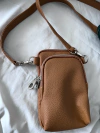 Bandolera porta celular, llaves, sube, y todo lo básico que necesitas para el día a a día. Interior forrado con pequeño bolsillo interno y bolsillo en exterior en la parte de atrás. Medidas 20 de alto x 13 de ancho.
